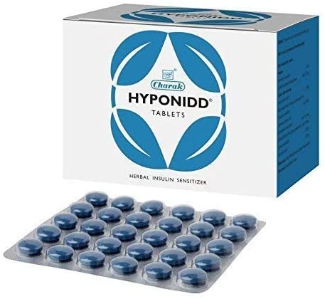 For PCOS ( Polycystic Ovarian Syndrome) Hyponidd tablet is a unique ayurvedic formulation for maintaining reproductive health in women. Herbs like Vijaysaar, Haridra help to balance hormones and thereby help manage PCOS symptoms. For Diabetes HYPONIDD have a beneficial effect not only in improving metabolism but also in maintaining blood sugar levels. The cumulative action herbs like Karela, Vijaysaar help improve glucose metabolism and are well known to improve pancreas functions. For PCOS Helps improve metabolism and balance hormones Helps in the management of PCOS symptoms Clinically proven and tested For Diabetes Complement to the anti-diabetic regimen Helps to delay the complications related to diabetes Improves the quality of life Clinically proven and tested Dosage: 1-2 tablets twice daily