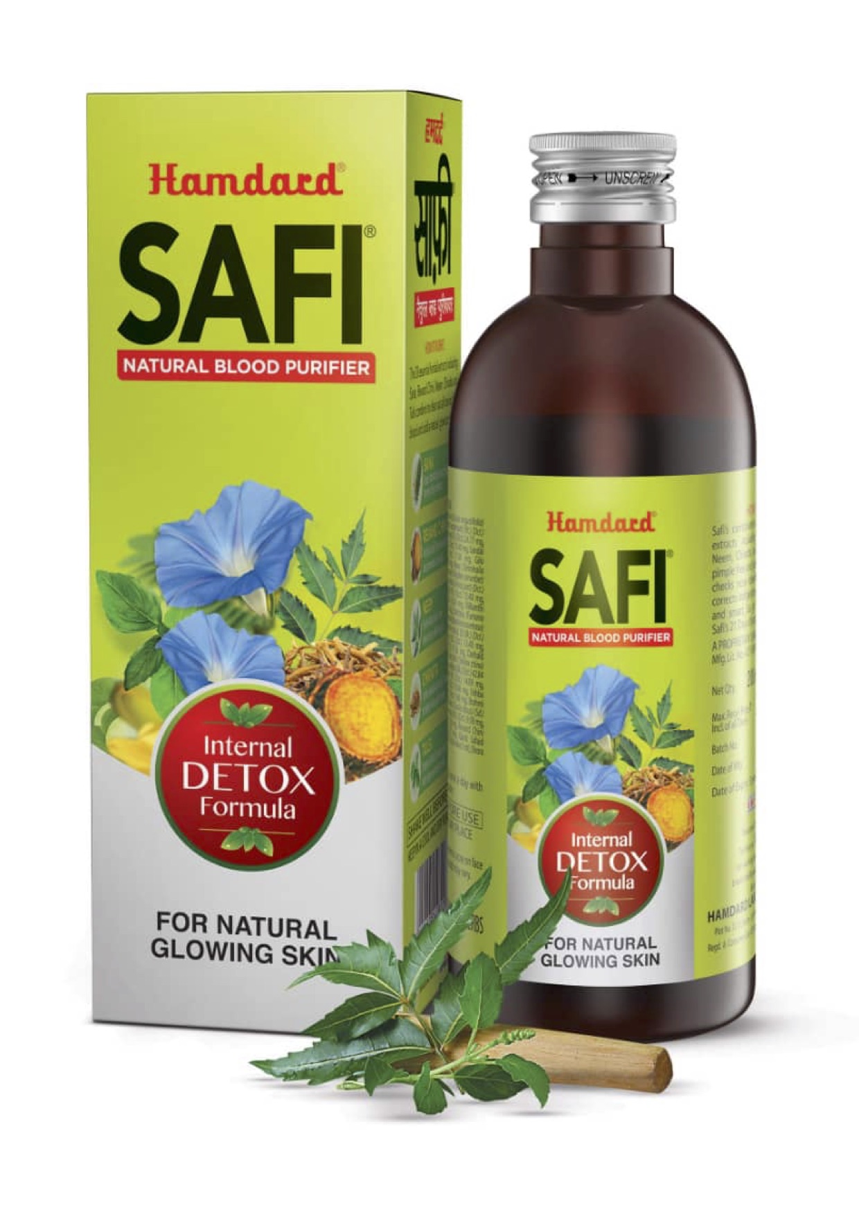 SAFI(NATURAL BLOOD PURIFIER) combination of 28 essential herbal extracts including Sana, Revand, Chini, Neem, Chilaita and Tulsi keep your Skin Pimple free and Glowing Naturally.